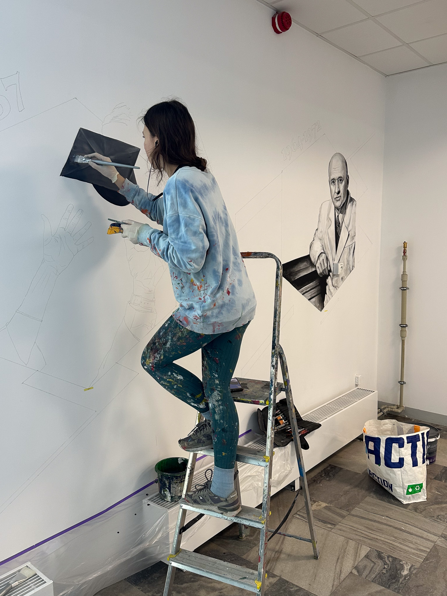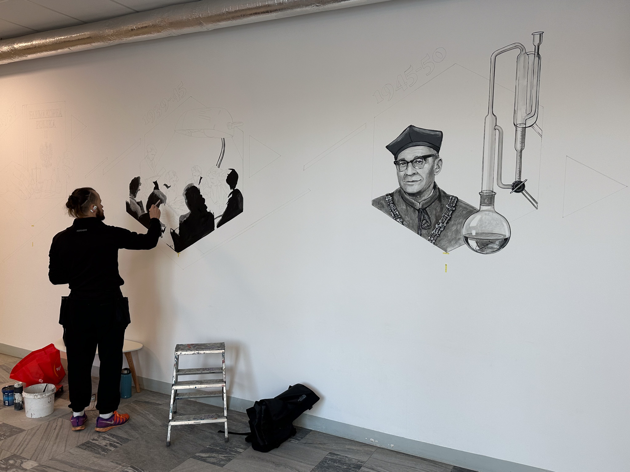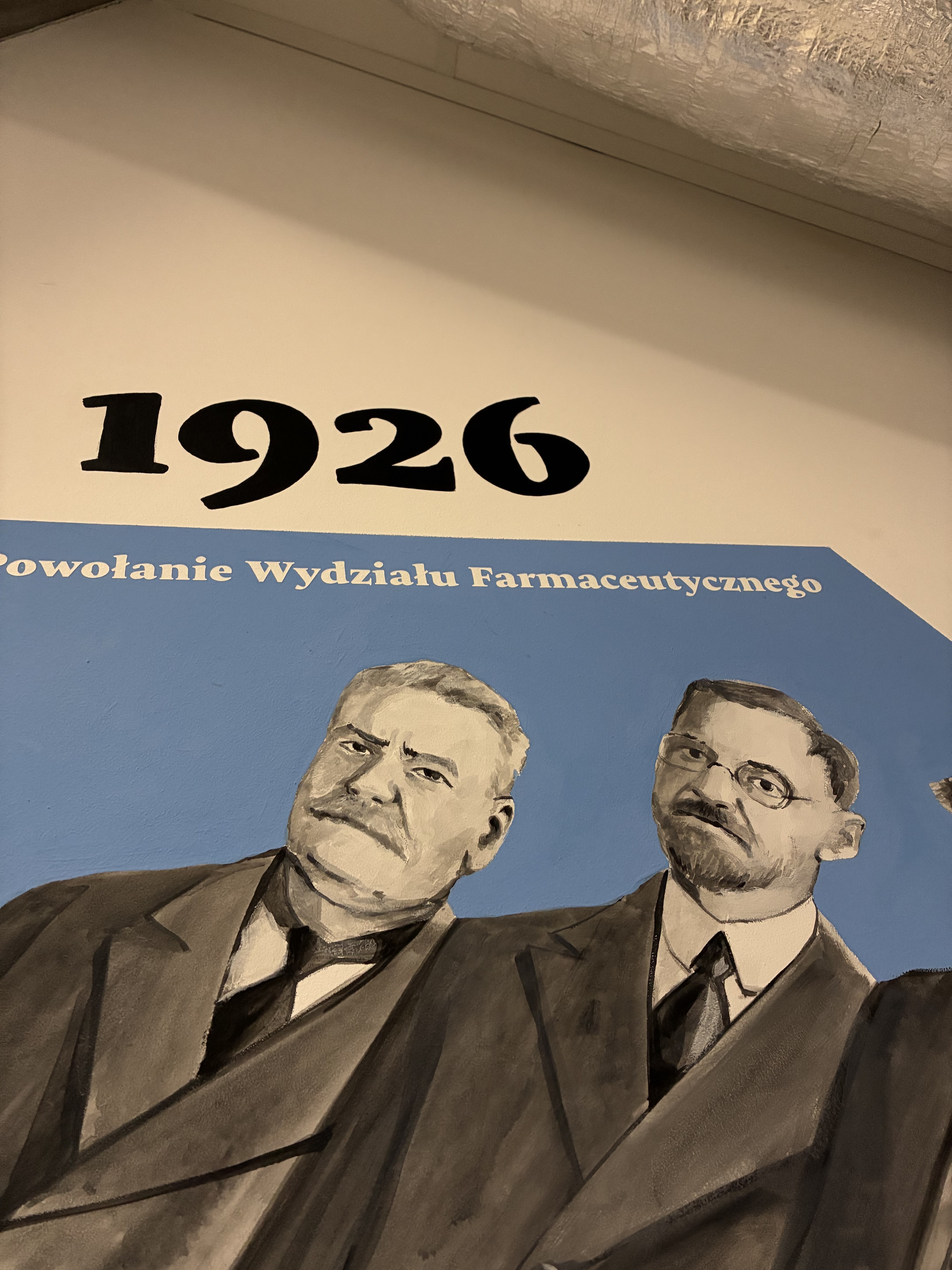 Z okazji obchodów 100-lecia Wydziału Farmceutycznego w budynku wydziału powstaje mural wewnętrzny. Prace rozpoczęły się w piątek 6 lutego i potrwają jeszcze kilka dni. Mural będzie przedstawiał ważne wydarzenia dotyczące historii wydziału. Uroczyste otwarcie muralu planowane jest na 20.03.2026. Poniżej przedstawiamy małe fragmenty muralu, które zostały dotąd wykonane. Całość- wkrótce ;)